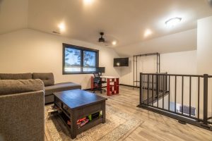 Oversized central living space with a high ceiling to make it feel large and airy.